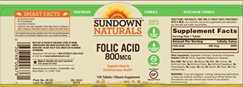 Sundown Naturals Folic Acid tablets are an easy way to get this important B vitamin every day. Just one vegetarian-friendly tablet a day supplies you with a high-potency source of Folic Acid to support heart and cardiovascular function, nervous system health, and help maintain proper metabolic functioning.* Folic Acid intake is especially important for pregnant women - one of the best things you can do before and during your pregnancy is to take plenty of Folic Acid, because of the prenatal support it provides.*Feature