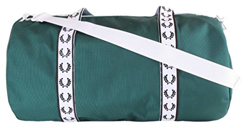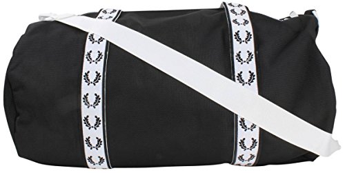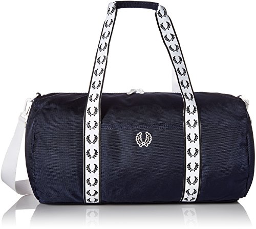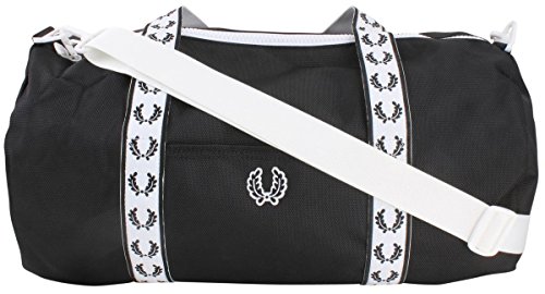 Studio : Fred Perry Men's Traditional Collections Publisher : Fred Perry Men's Traditional Collections Binding : Apparel Product Description With a high-shine hardwearing finish, our barrel bag is designed with retro sportswear details and bold Fred Perry track tape. Front slip pocket, internal zip pocket along with laurel wreath branded webbing and retro laurel wreath badge. 0