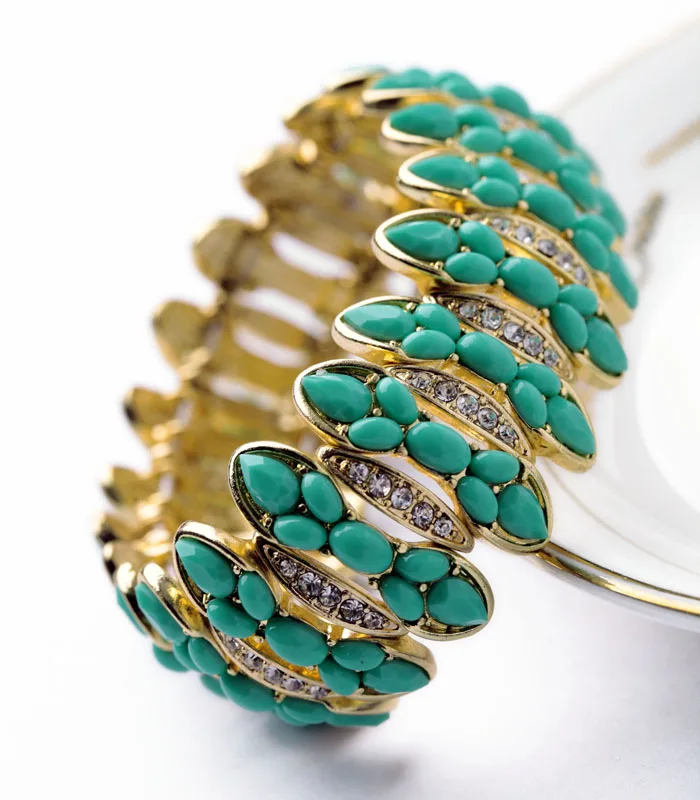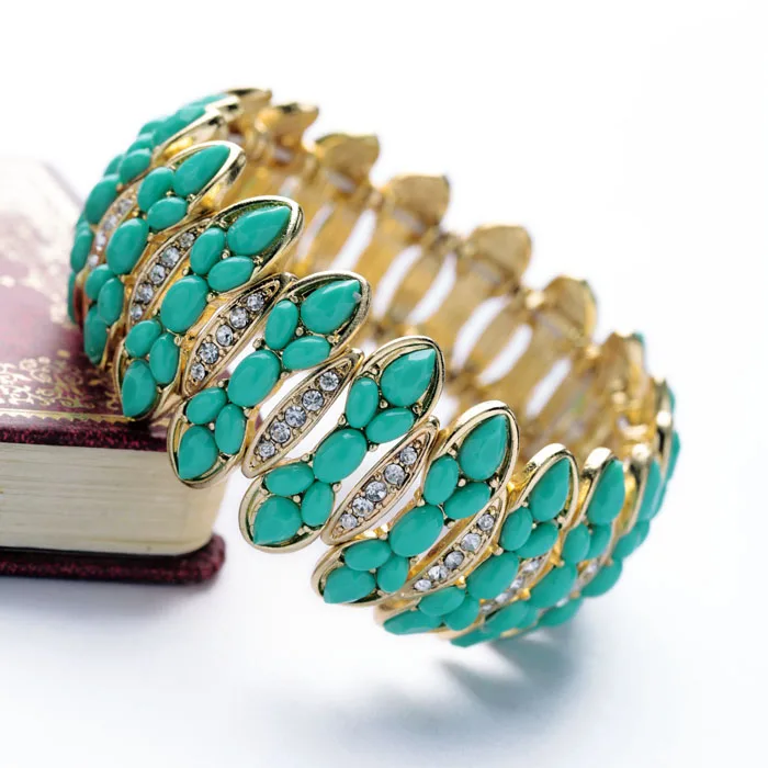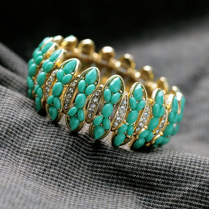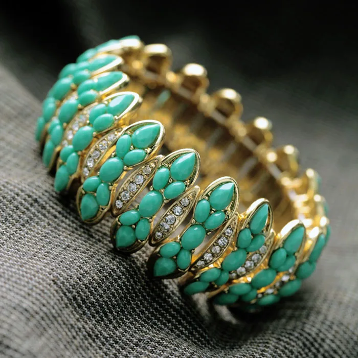 Production name ::classical Handed Green Resin Stone Elastic Charm Bracelets & Bangles