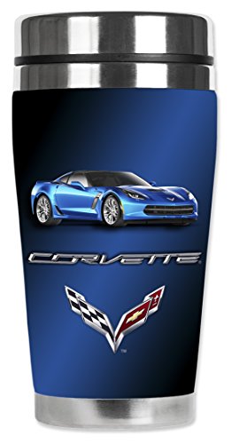Mugzie Corvette C7 Blue Vette Travel Mug with Insulated Wetsuit Cover, 16 oz, Multicolor