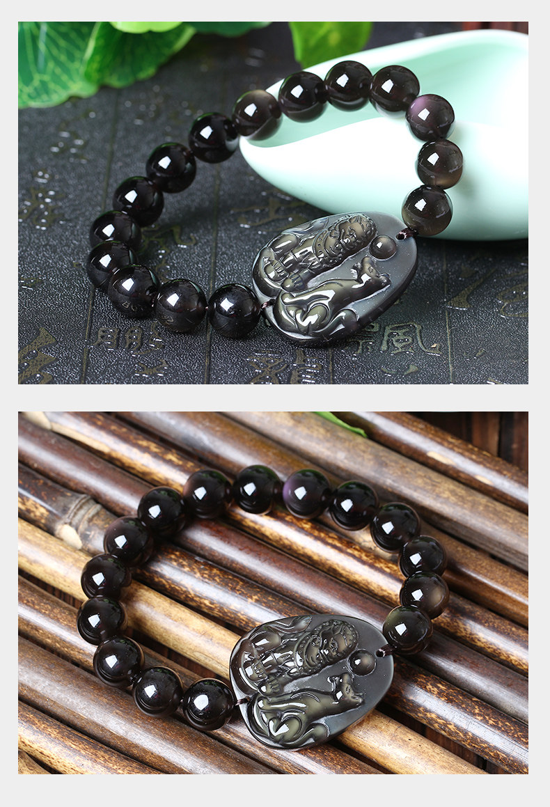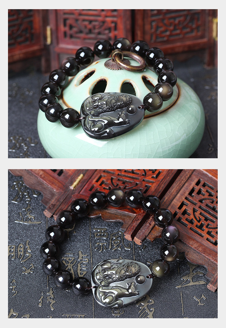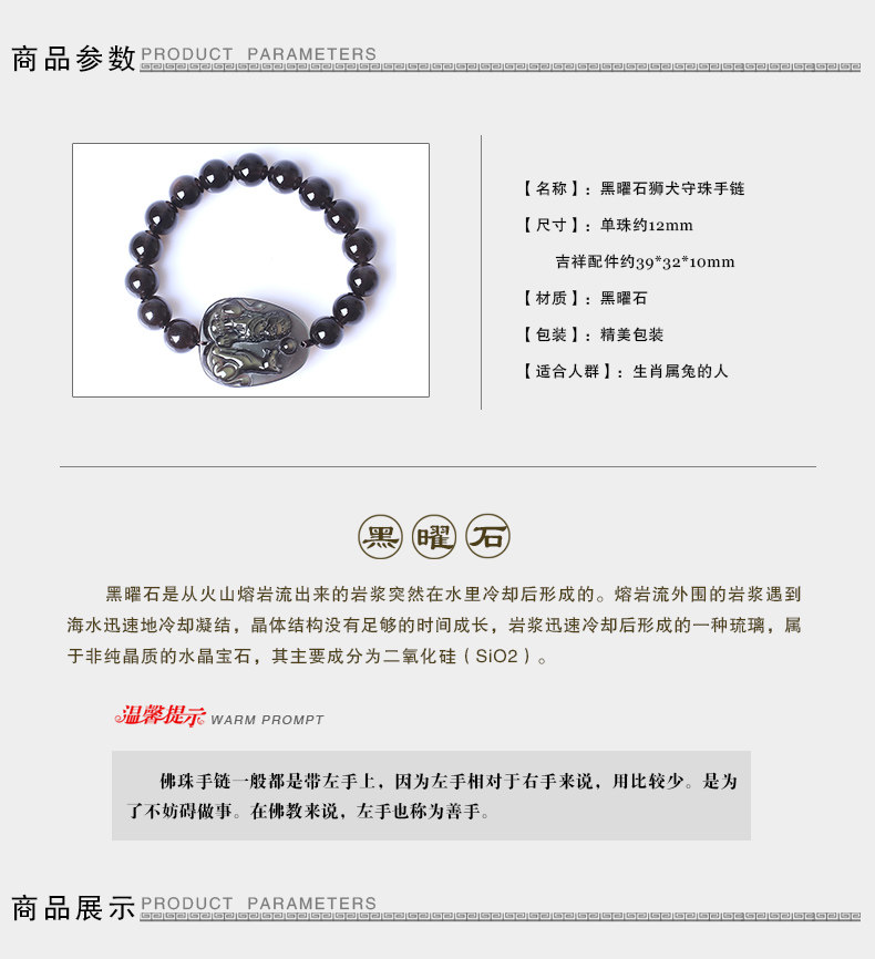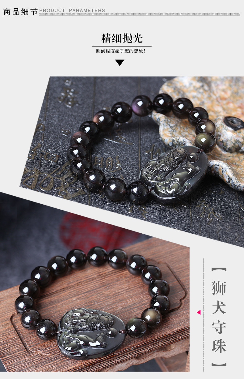 开光狮犬守珠冰彩黑曜石手链属兔开运吉祥物
