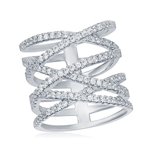 -. Title : 925 Sterling Silver Long 'X' Criss Cross Ladies CZ Ring, Cubic Zirconia Stones, Size 6' 7' 8' 9'