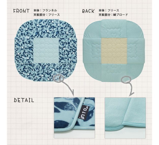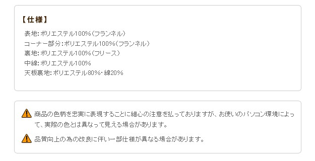 材質:表地・コーナー部-ポリエステル100%(フランネル)、裏地-ポリエステル100%(フリース)、中綿-ポリエステル100%、天板裏地-ポリエステル80%・綿20%