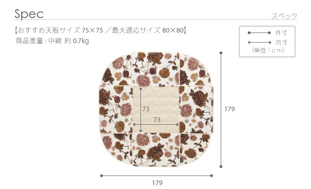 オススメこたつサイズ(約):75x75cm~80x80cm