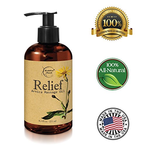 -. Feature : ARE YOU SEEKING RELIEF FROM MUSCLE RELATED ACHES AND PAINS? Look no further! Relief Arnica Massage Oil by Brookethorne Naturals can provide soothing relief from muscle stiffness, soreness and more... / PERFECT FOR SPORTS MASSAGE AS A SORE MUSCLE MASSAGE OIL! If you play sports, workout or lead an active lifestyle this massage oil is for you! Sore muscle relief is just a massage away with this therapeutic massage oil for athletes. Great Mothers day gift for the active Mom! / WHETHER YOU SPECIALIZE IN MASSAGE THERAPY OR ARE A NOVICE AT HOME MASSEUSE, Relief Arnica Massage Oil will allow your hands to glide smoothly and will leave the skin feeling soft, smooth & refreshed (not greasy or sticky). / MADE WITH PREMIUM QUALITY, ALL NATURAL INGREDIENTS - Sweet Almond Oil, Grapeseed Oil, Jojoba Oil & Arnica Montana Oil are perfectly blended and enriched with Eucalyptus, Lemongrass, Rosemary & other essential oils to create this exquisite body massage oil. / ALL NATURAL - MADE IN THE USA - PARABEN FREE - NOT TESTED ON ANIMALS - 100% SATISFACTION GUARANTEED
