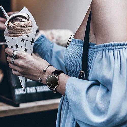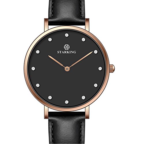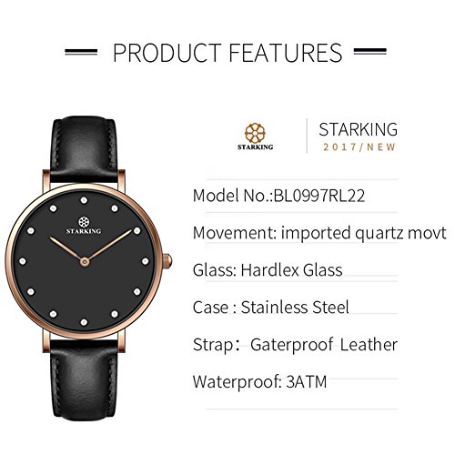 STARKING Women Watches Leather Rhinestone BL0997 Quartz Waterproof with White Dial