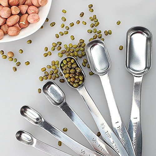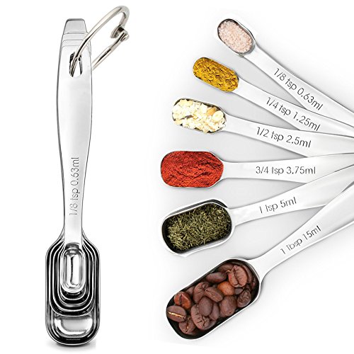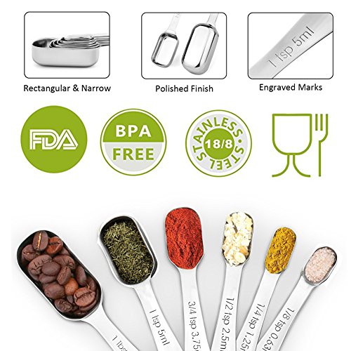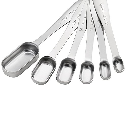 Sunkuka 6-Piece Stainless Steel Measuring Spoon Set for Dry and Liquid with Narrow Shape, Easy to fit in Spice Jars