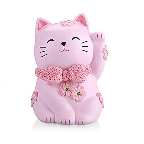 ElecNova Cute Pink Maneki-neko Lucky Cat Piggy Bank Home Decor Ornament Gift for Girls