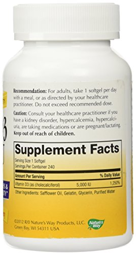-. Binding : Health and Beauty -. Brand : Nature's Way -. Label : NATURE'S WAY -. Manufacturer : NATURE'S WAY -. PackageQuantity : 1 -. ProductGroup : Health and Beauty -. ProductTypeName : HEALTH_PERSONAL_CARE -. Publisher : NATURE'S WAY -. Studio : NATURE'S WAY -. Title : Vitamin D3 (5000IU)