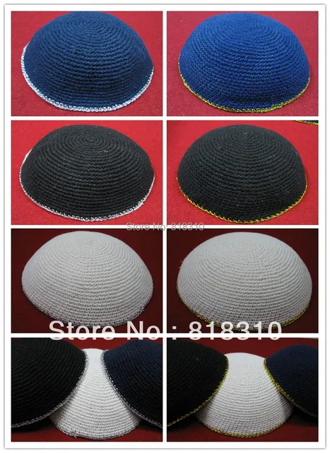 [해외]높은 품질의 수제 니트 YARMULKE 다른 컬러 테두리 KIPPAH