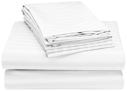 Hotel New York 90GSM Embossed Dobby Stripe Microfiber 6-Piece Pillowcases and Sheets Set, Full, White