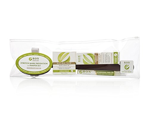New moms gift set includes paraben, toxin and mineral oil free B.O.N Nourishing Skin Oil to improve the skin’s elasticity and soothe itchy tummies, B.O.N Natural Soap to gently cleanse the most sensitive skin and a premium dry body brush for exfoliation and circulation stimulation.