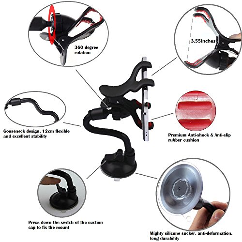-. Feature : Solid quality made ABS+PVC+Silicone, long durability anti-shock anti-deformation / Gooseneck design, flexible and excellent stability, adjust to any angles you want / Mighty clamp with shock-resistant and slip-resistant rubber pad, compatible with almost all portable gadgets, support 360 degree rotation, competent cellphone holder / Premium Windshields Suction Cup, easy to adhere to any flat surfaces. The suction can be restored by rinsing the suction cap with warm water and allowing it to air dry. / Portable and Lightweight design, easy to install and disassemble. Promised and efficient delivery, 1-YEAR FREE REPLACEMENT & NEEDN'T RETURN Service. The car cradle is designed and made by BRILA, and we haven't authorized any other third-party seller to sell BRILA official products, Please double check the seller name before placing orders and beware of any similar knockoffs, we will not responsible for the item purchased from other seller.