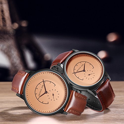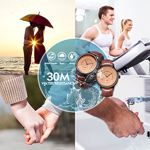 4. Comfortable Adjustable Leather Band Strap: High quality brown genuine leather band with Buckle provide comfortable wearing experience and convenient to adjust the wirst, fits for all wrist sizes.