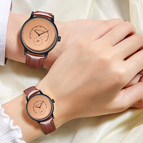 ♥INDEPENDANT SECONDS HAND DESIGN♥ Classic simple couples watch with matte black stainless steel case. Independent seconds hand sub-dial and brown painted time mark design makes you easy to read. Soft leather band perfect for all kind of activities