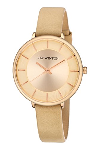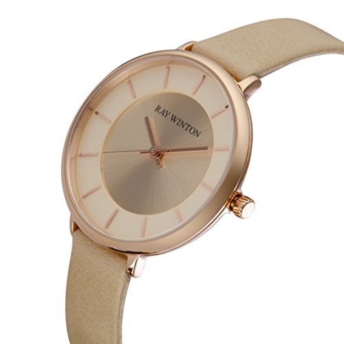 Ray Winton Women's WI0808 Slim Analog Champagne Dial Beige Genuine Leather Watch