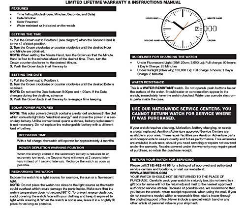 With just one full charge, your watch will continue to work for up to 4 months;Features a calendar window and a solar cell to convert light into electrical energy.
