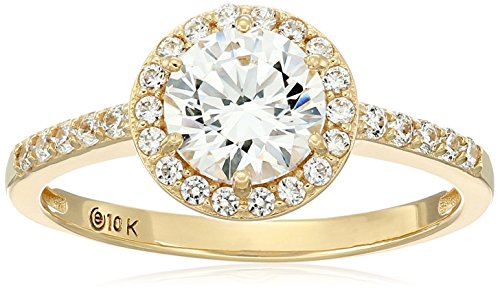 -. Title : 10k Gold Swarovski Zirconia Round Halo Ring