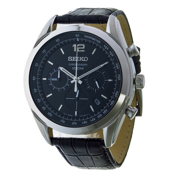 セイコー SEIKO クロノグラフ クオーツ メンズ ウォッチ 時計 ブラック  商品仕様:(約)H43×W43×D12mm(ラグ、リューズは除く)、重さ(約)90g、腕周り最大(約)19.5cm、最小(約)14cm ステンレス(ケース)、レザー(ベルト) 専用BOX、保証書、取扱説明書