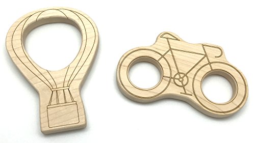Little Sapling Toys Natural Wooden Baby Teether Set - Hot Air Balloon and Bicycle