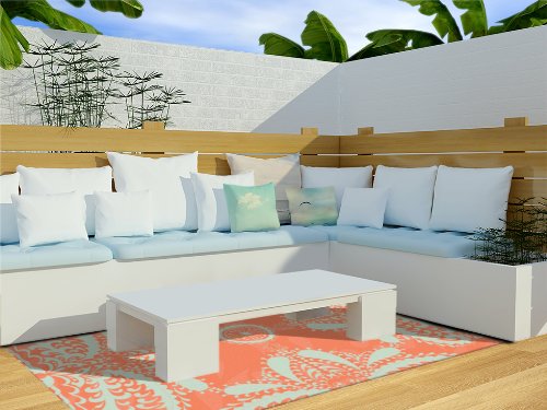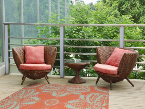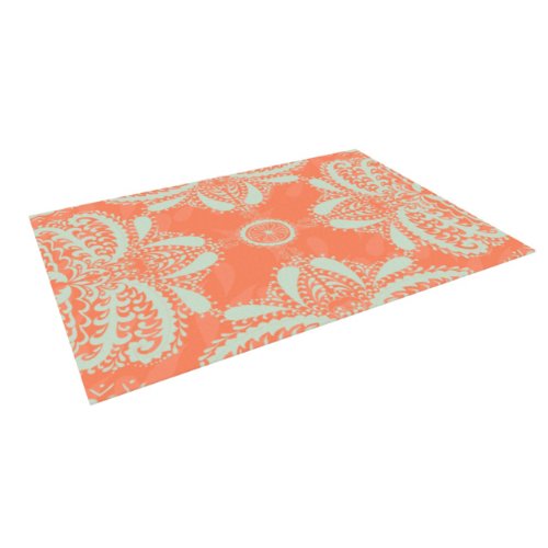 Kess InHouse Nandita Singh "Motifs in Peach" Orange Floral Indoor/Outdoor Floor Mat, 4-Feet by 5-Feet