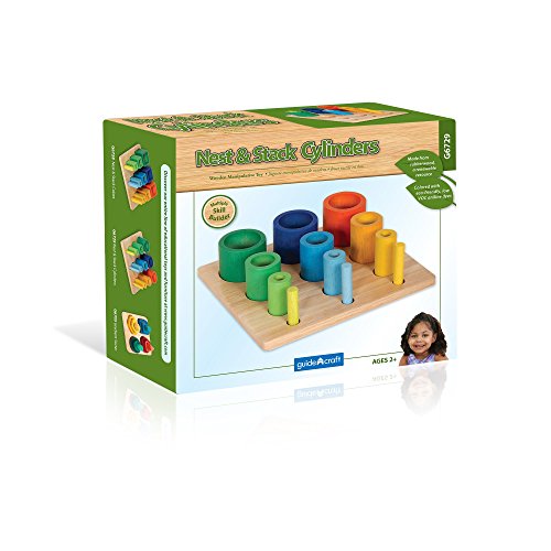 The unique design of this wooden manipulative allows for several exciting ways to play and learn. The brightly colored cylinders are graduated in size and nest together, inspiring exploration and promoting fine-motor and shape-recognition skills. Also, each series of shapes feature colors that range from primary to pastel: as the pieces get smaller, the colors get lighter. Ages 2+. 8"L x 9"W x 3"H.Feature
