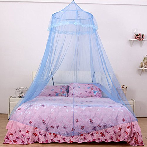 Luxury Lace Hanging Bed Net Canopy Mosquito Netting Fit Twin Full Queen Bed Blue