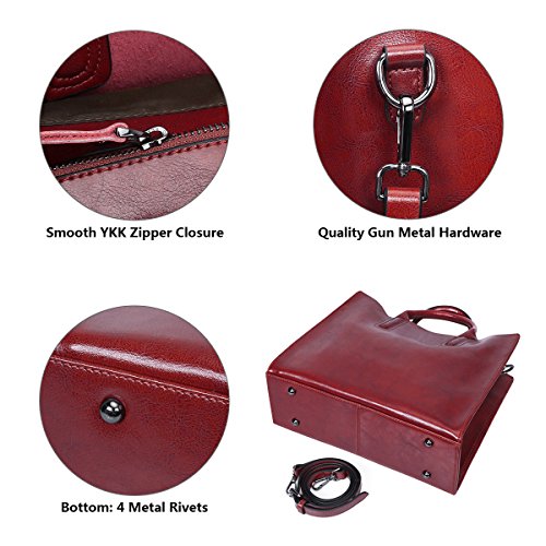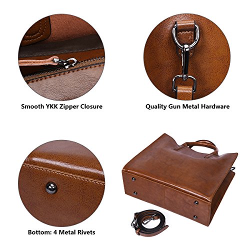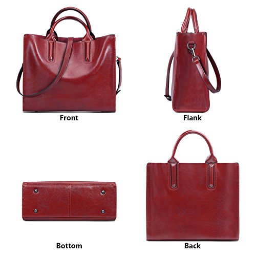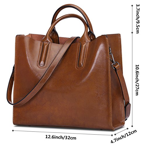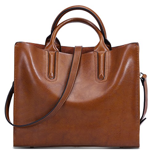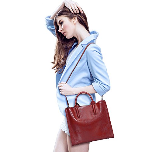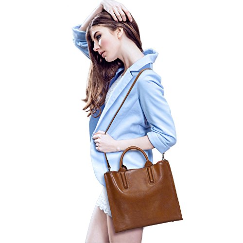 Product Description This bag is made of split cow leather. It is often coated to be various colors and pattern. It is moderate genuine leather, soft and anti-scratch. To create a vintage and noble look, the leather is often polished and oiled, which makes the surface shinier and sleeker. It may have natural odor at first, but the smell will fade away after a couple days' airing out. Features: This is the purse that you can wear on your shoulder with both double top handles and long strap. It is not too tiny or too thin, not too big or too small. SIZE: 12.6inch/32cm(L) x 4.7inch/12cm(W) x 10.6inch/27cm(H) Simply but classy style, no matter you are a college student or office lady, single female or a wife, this bag is also suitable for you. Package includes: 1 x S-ZONE Women Leather Top Handle Bag 1 x Adjustable Shoulder Strap 0