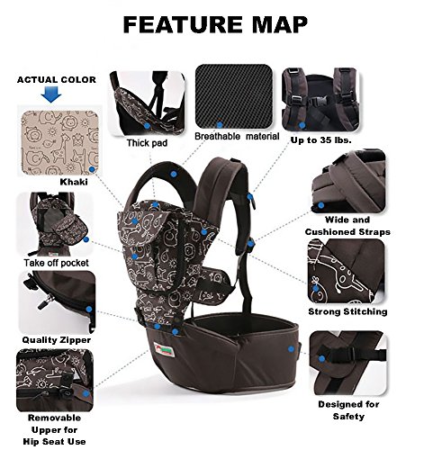 -. Binding : Baby Product -. Brand : MiniBaby -. Color : Brown -. EAN : 1103441198158 -. Feature : FLEXIBLE: Carry your Little One on front or back or use just the Hip Seat for super easy carrying support. Neutral design looks great on both Mom and Dad, plus it goes with practically any color clothing. / BACK-SAVER: Ergonomical design puts Baby's weight on your hips instead of shoulders - Relief at Last!!! / TEMPERATURE CONTROL: The breathable (and machine washable) mesh keeps Baby comfortable, and for those extra hot days simply unzip the handy storage pocket from Baby's back for instant air. We also include a detachable head-cover that snaps in place for extra protection from the elements. / ERGONOMICAL: The built-in mini seat provides a natural seating position that is good for your Baby (and any person actually). 'Sitting' is much preferred to a 'Dangling', wouldn't you agree? / 100% GUARANTEED: We are confident you'll love our Baby carrier so of course we offer a 100% SATISFACTION GUARANTEE. There is no risk to you. Make life with your Baby easier and better for the whole family. Buy with confidence today! Thank you. -----> -. IsAdultProduct : 0 -. Label : TopGreen -. Manufacturer : TopGreen -. MPN : 4328001081 -. PackageQuantity : 1 -. PartNumber : 4328001081 -. ProductGroup : Baby Product -. ProductTypeName : BABY_PRODUCT -. Publisher : TopGreen -. Studio : TopGreen -. Title : 'On The Go' - All-in-One Khaki Baby Carrier with Ergonomic Hip Seat & Protective Head Cover.