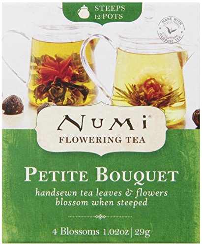Packaged in an exotic hand-made dark mahogany bamboo case, this Flowering Tea Gift Set is filled with six bouquets of tea leaves that blossom into a myriad of flavors from sweet and subtle to rich and bold. The stylish glass teapot included is ideal to observe the flowering tea petals. A simple luxury that heightens the tea experience and makes for a conversation piece, these Leaves of Art are a true tea lover's bliss. We invite you to experience the simple elegance of a true tea transformation--elevating loose leaf tea to the next level; Art. Requiring no tea bag or strainer, flowering teas are environmentally kind as well as easy to serve; just use the glass teapot (included). The gift set includes six varieties: Dragon Lily: White Tea with orange Lily petals and osmanthus flowers has a velvety apricot flavor. Jasmine Lovers: White Tea leaves and string of jasmine flowers releases honey nectar taste. Lavender Dream: White Tea leaves and crisp, aromatic Lavender flowers compliment a tangy Hibiscus flower. Shooting Star: Green Tea and pink Amaranth bulbs have a buttery fragrance with fruity notes. Sunset Oolong: Oolong Tea leaves and Lily flower have nutty richness highlighted by peach. Golden Jasmine: Golden-tipped Black Tea scented with delicate jasmine imparts hints of chocolate.Feature