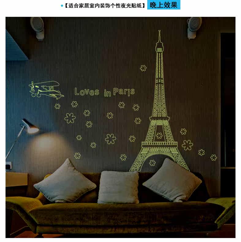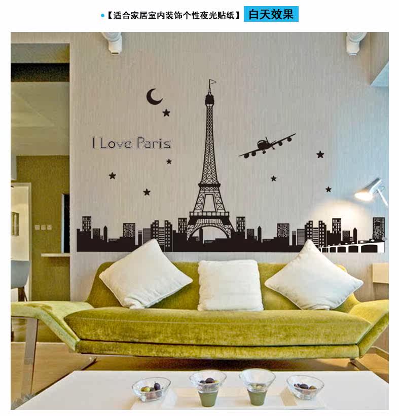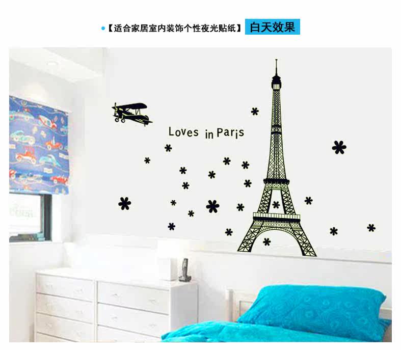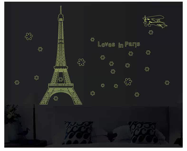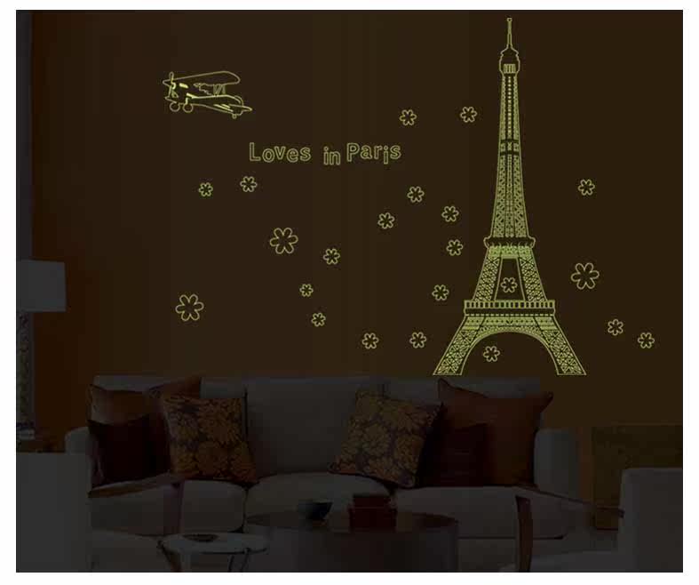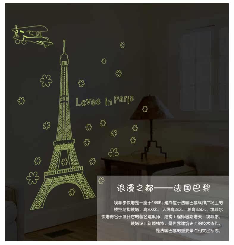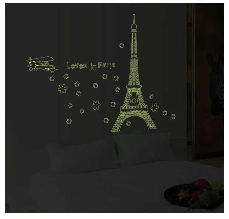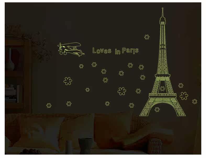 艾菲尔铁塔夜光贴荧光贴 客厅卧室温馨时尚可移除装饰贴纸贴画