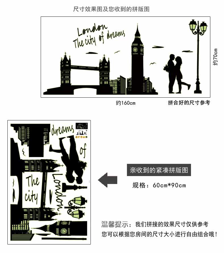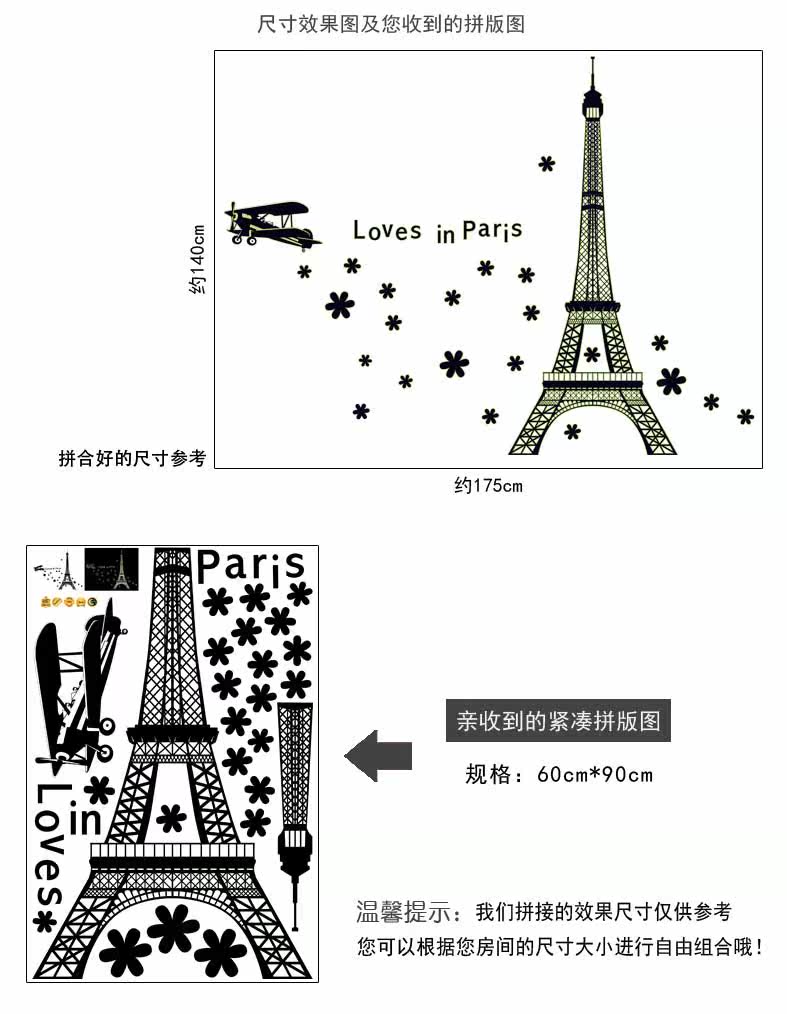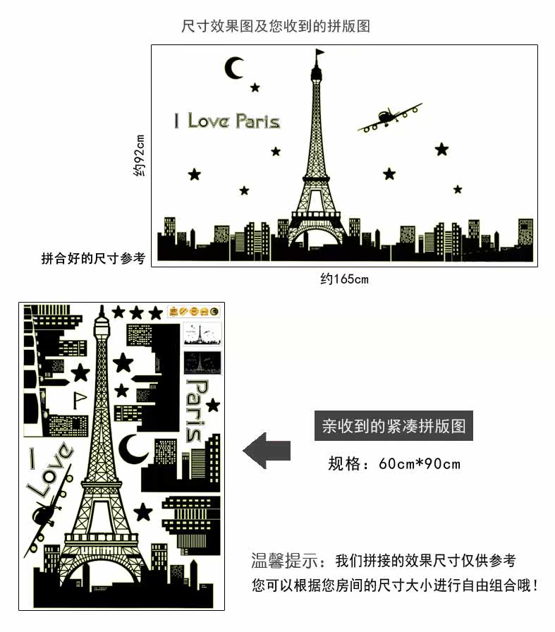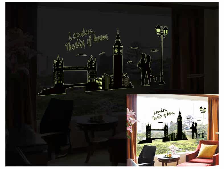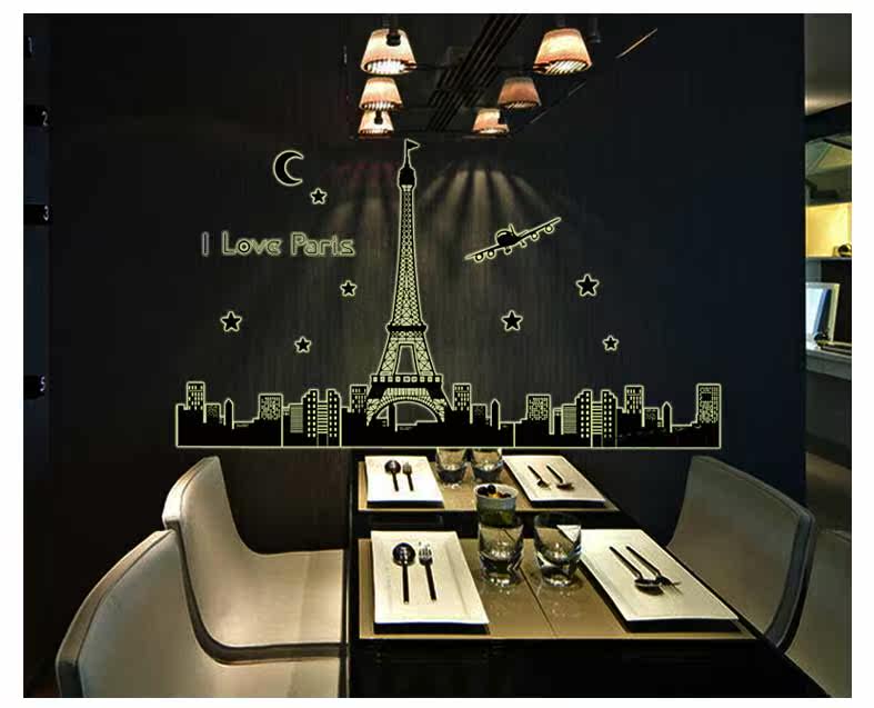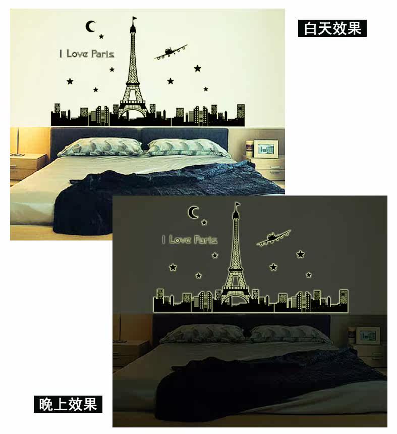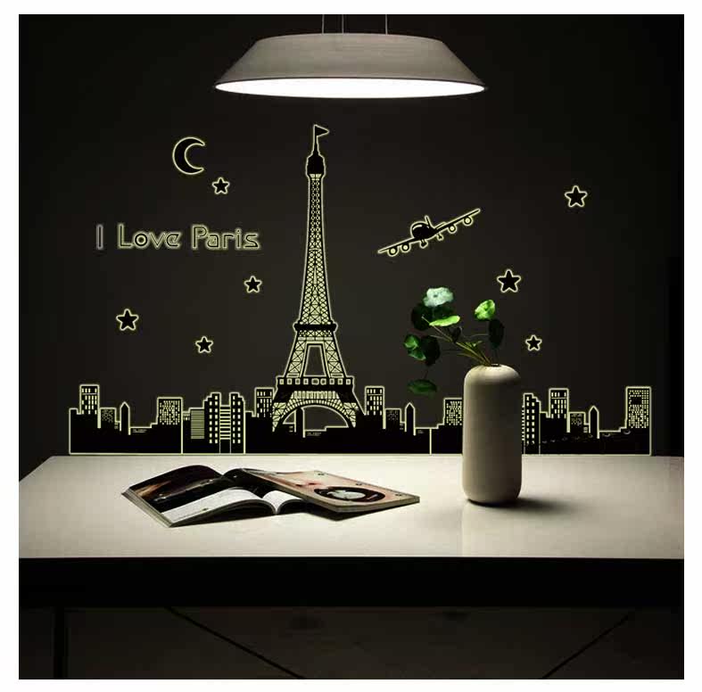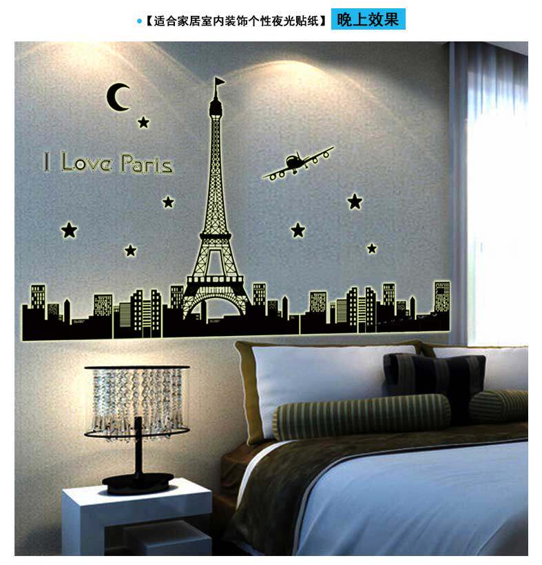 艾菲尔铁塔夜光贴荧光贴 客厅卧室温馨时尚可移除装饰贴纸贴画