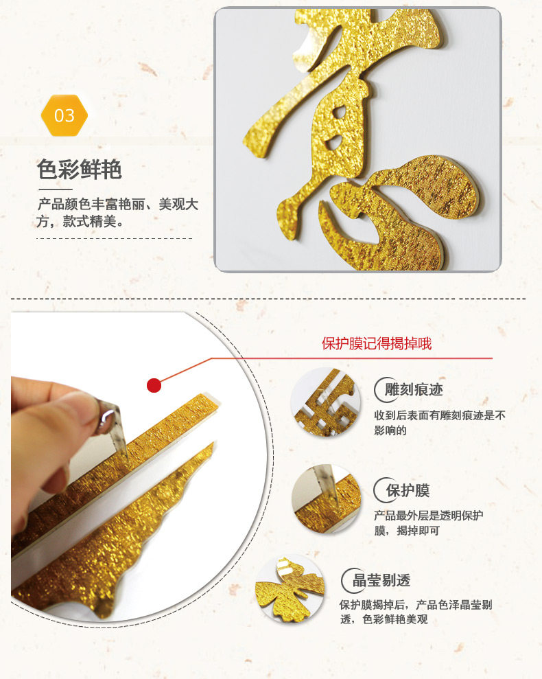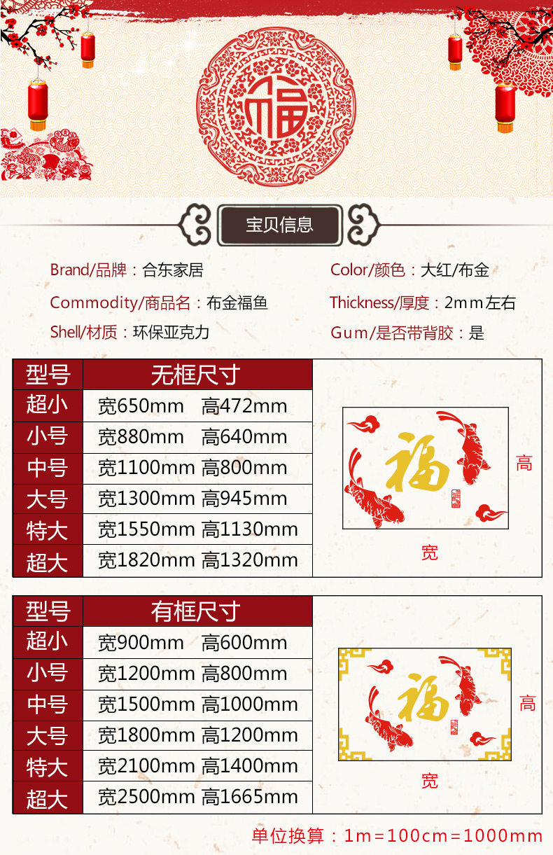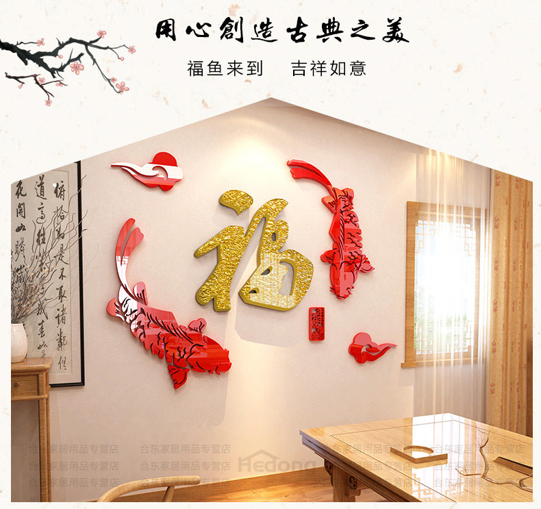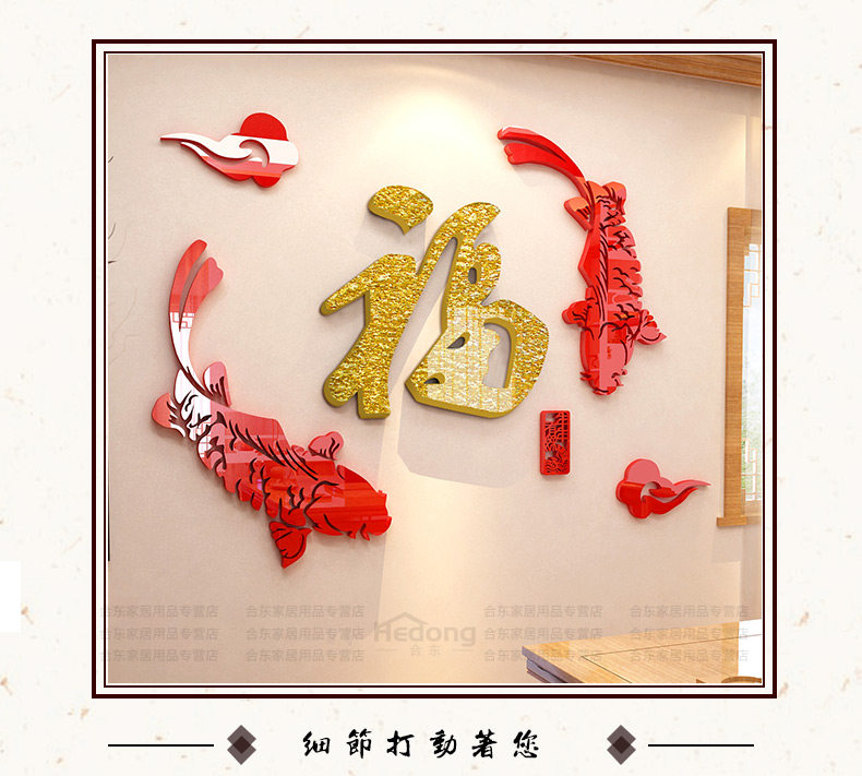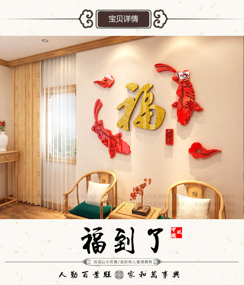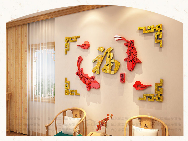 福字鱼字画3d立体墙贴客厅电视背景墙贴画中国风亚克力墙壁上装饰
