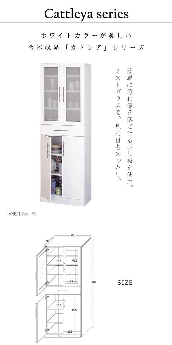 | 仕様 | 梱包:2個口 組立式 扉内内寸/ガラス部:約W56×D35×H76.5cm、扉部:約W56×D35(34.5)×H76.5cm 引出内寸:約W53×D30.5×H9.5(10.5)cm 可動棚5枚付(上下段とも3.2cmピッチ17ヶ所移動) |