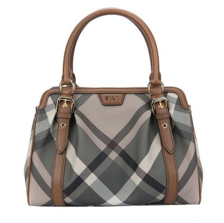 닥스 고유의 체크 패턴 바탕에 브라운 가죽을 배색하여 포인트를 준 숄더백입니다.
