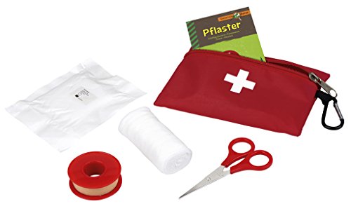Enthalt 10 Pflaster, eine Pflasterrolle, eine Kompresse, Wundverband und eine Schere