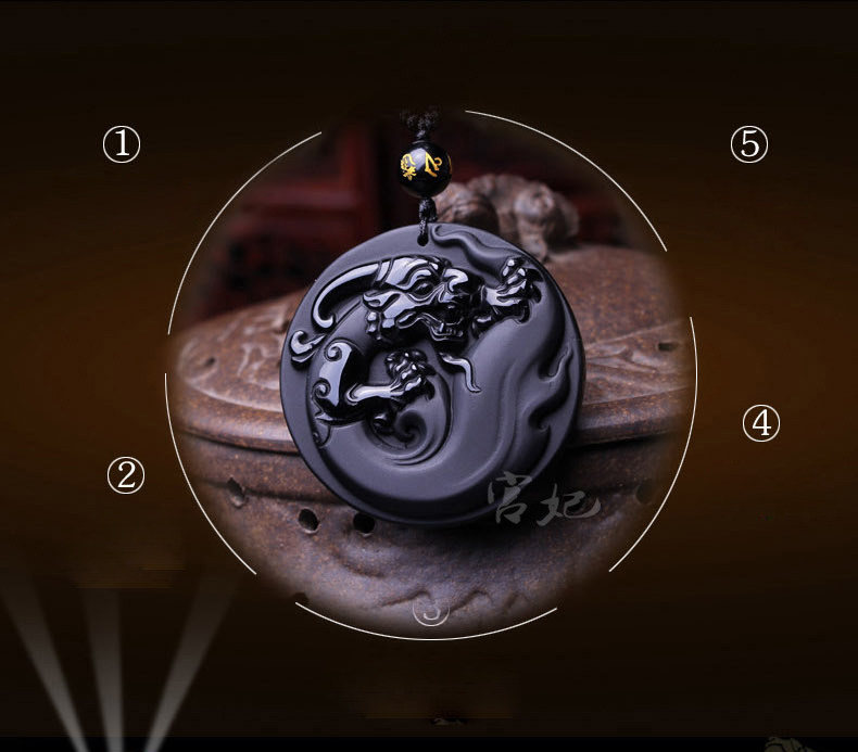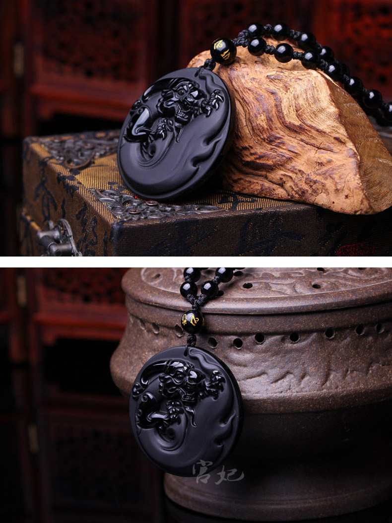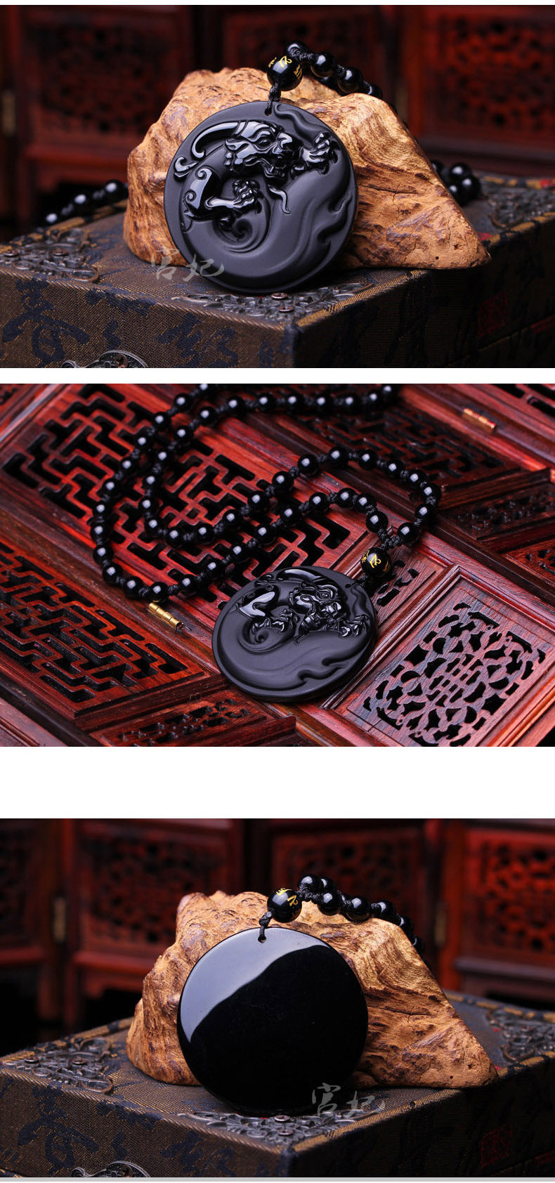 开光龙蛇保岁黑曜石吊坠如意龙配2017年属鸡蟠龙柱吉祥物神龙吐珠