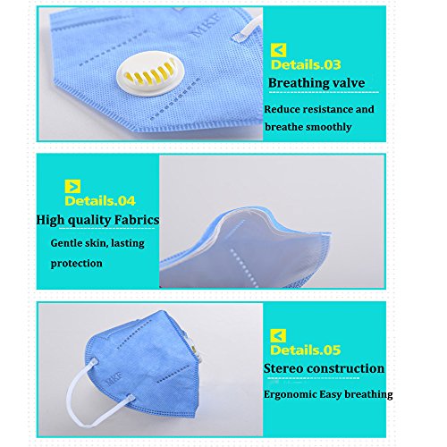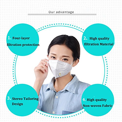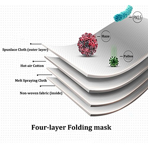 -. Feature : ♥♥This anti dust mask is made of non-woven fabrics and N95 filtering material,four-layer filtration protection, healthy breathing, persistent filtration. / ♥♥Full length of this face mask approx. 9.4" * 4.9",which can fit for all ages,the mask belt can stretch the length, high elastic ear rope, fitting ear, comfortable to wear, so you can ease of purchase,do not worry about it. / ♥♥This anti-dust face mask has adjustable nose clamp, fitting nose type, high degree of tightness,no pressure to breathe. / ♥♥High quality filtration material, smooth ventilation, refuse odor can effectively prevent Haze,Pollen, Dust, Germs, Allergies, Smoke, Pollution, PM2.5 ,Ash and so on. / ♥♥The large mouth mask designed with a breathing valve,which P.R.Inciple is that the expiratory gas is the positive pressure of the discharge of the valve, to quickly exhaust the body's exhaust, reduce the use of a mask when the sultry feeling, while the suction when the negative pressure will automatically shut the valve to avoid suction into the environment of pollutants.