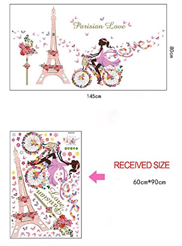 -. Binding : Kitchen -. Color : Pink -. EAN : 0761448021919 -. Feature : Bold yet sophisticated / Will look beautiful in any room / Reusable and repositionable / Suitable for any wall color -. IsAutographed : 0 -. Label : Scarvesnthangs -. Manufacturer : Scarvesnthangs -. PackageQuantity : 1 -. ProductGroup : Home -. ProductTypeName : HOME -. Publisher : Scarvesnthangs -. Studio : Scarvesnthangs -. Title : Peel and Stick, Safe On Walls,185 cm x 80 cm Romantic Paris Wall Sticker For Kids Rooms Eiffel Tower Flower Butterfly Fairy Girl Riding Wall Art Decal Home Decor Mural -. UPC : 761448021919