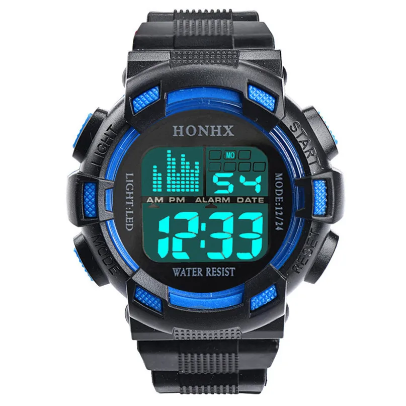 Feature:Water Resistant,LED display,Stop Watch,Auto Date,Complete Calendar,Week Display,Alarm,Swim,Chronograph