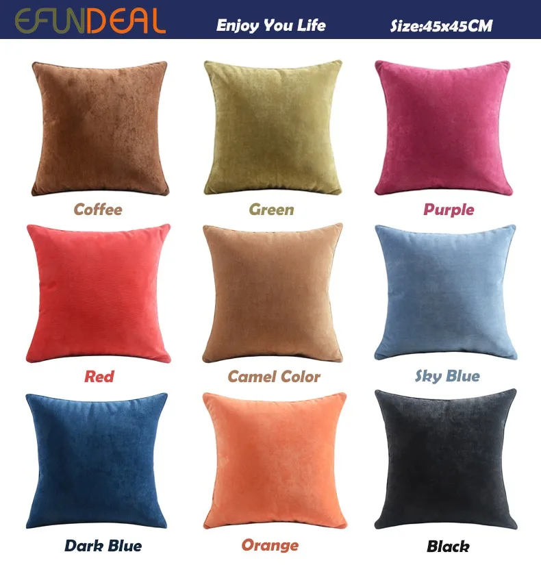 Pattern:Solid Color Black Blue Green Red Purple Home Decorative PillowCase