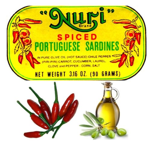 [Product Information]- Spiced Portuguese sardines in pure olive oil hot sauce, piri piri, carrot, cucumber, laurel, clove and pepper corn