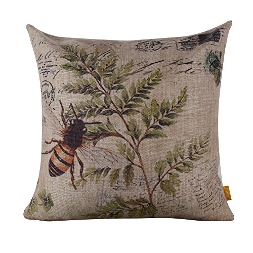 LINKWELL 4545cm Retro Vintage Brown Paris Country Bee Leaf Linen Cushion Cover Postmark