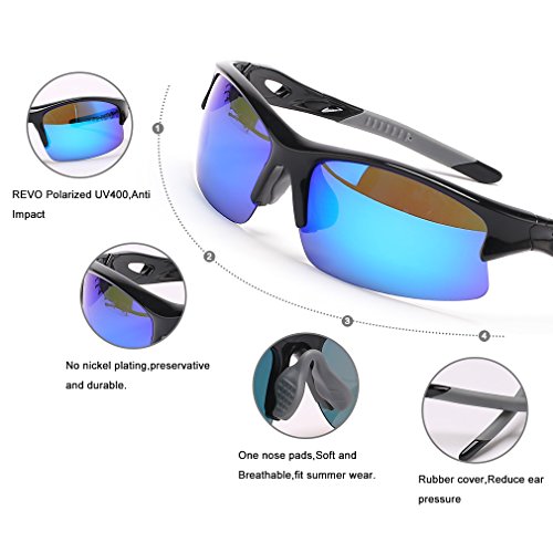 100% UV Protection: Sunglasses lenses are UV400, protecting your eyes from harmful UVA & UVB Rays totally. The lenses are polarized lenses against strong sunlight. The polarized sports sunglasses is perfect for men and women