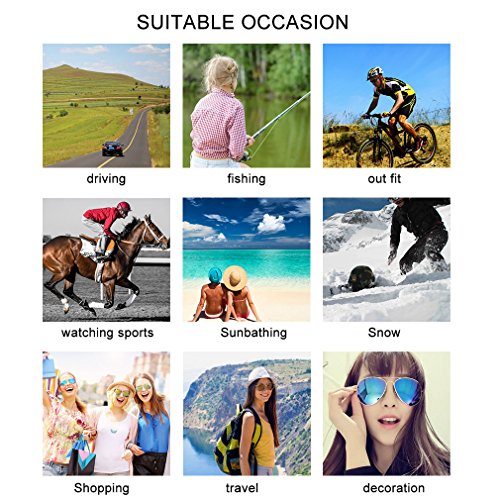 TR 90 plastic frame: Our sunglasses frame is constructed with highest quality TR90 materials which is ultra lightweight and anti-shock. You can wear it when you are engaged in all kinds of outdoor recreation, sporting or other activities