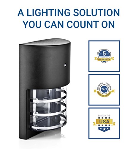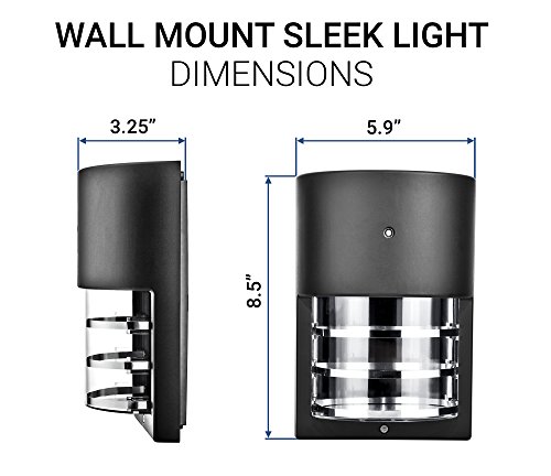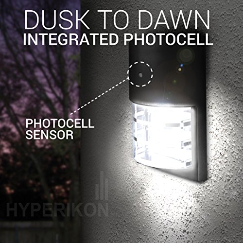 Hyperikon 6w Outdoor LED Wall Mount Sleek Design Dawn-to-Dusk Photocell Sensor Included, 30w Equivalent, 4000k (Daylight Glow) 500 Lumens, Outdoor Area Lighting, IP 65 Weatherproof