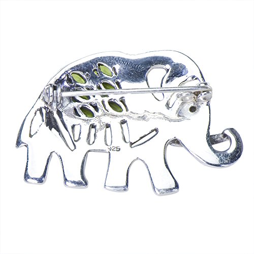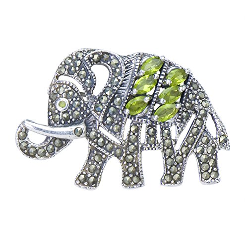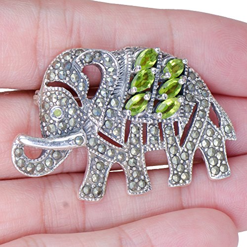-. Title : Natural Peridot Marcasite Gem Elephant Thai Style 925 Sterling Silver Brooch Pin