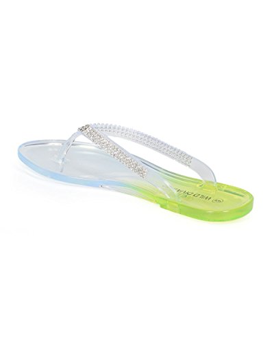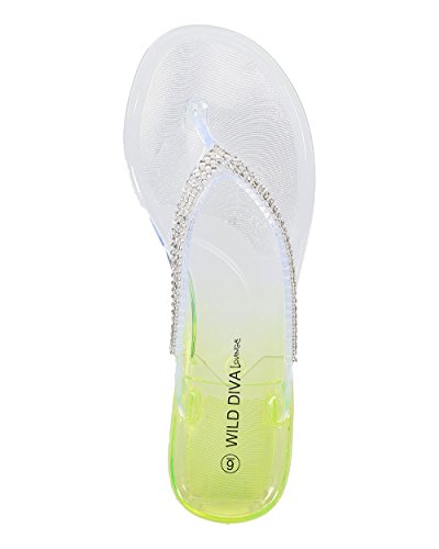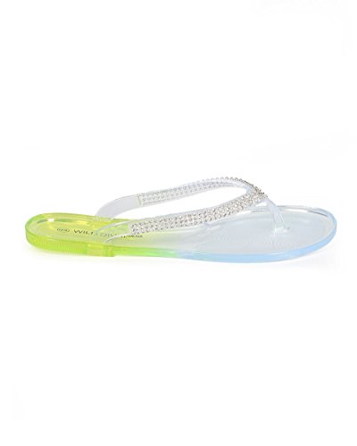 Wild Diva CG40 Women Clear Ombre Jelly Rhinestone Flip Flop Sandal - Neon Yellow