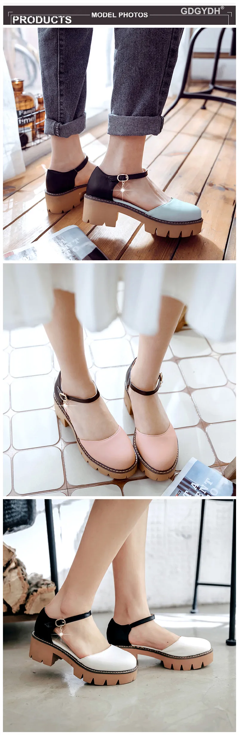 Fashion element:Platform,Ankle strap,Square heels