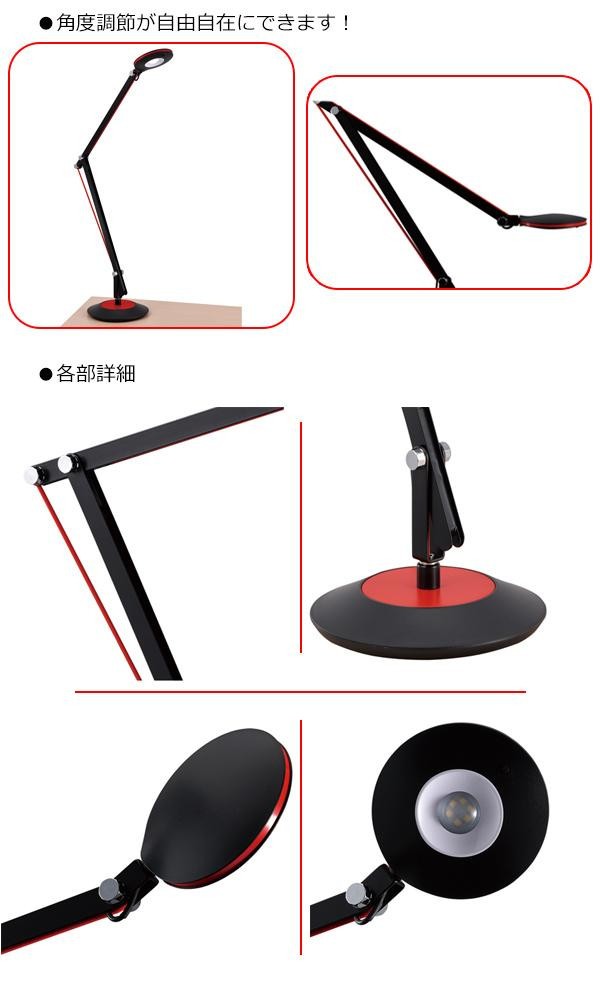 | 角度調節が自由自在にできるLEDデスクライトです。ロングアーム使用で、広範囲を照射することが可能(ライト可動距離:半径85cm)!!読書用、作業用、間接照明としても利用できます。 |